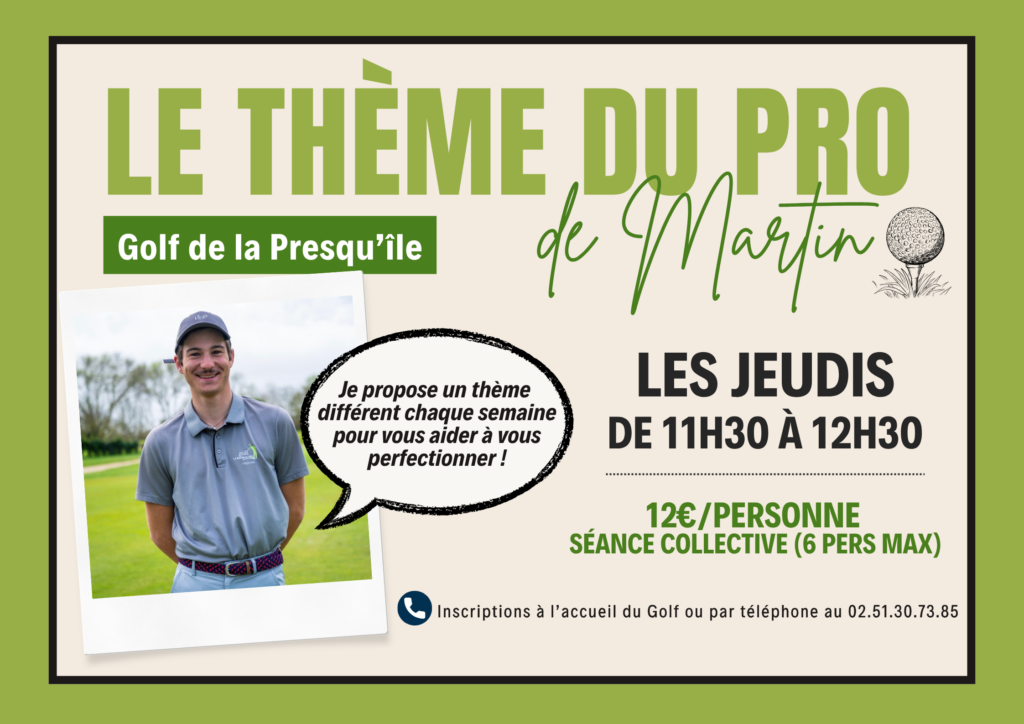 Que vous ayez envie de perfectionner votre technique, d’acquérir les fondamentaux ou simplement de découvrir le golf dans une ambiance conviviale, Martin GUY et Fabrice BLOUIN vous accompagne avec des formats adaptés à chaque profil :